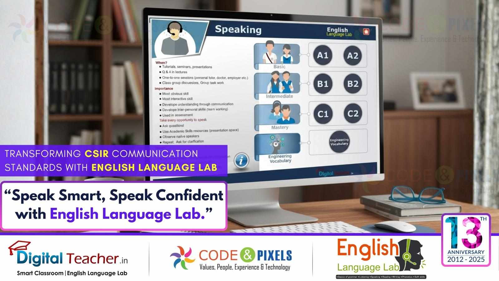 An English Communication Lab is a digital learning environment designed to improve a learner’s Listening, Speaking, Reading and Writing (LSRW) skills. It uses software-based modules, audio-visual tools and speaking practice activities to help learners build real communication skills—not just theoretical knowledge.